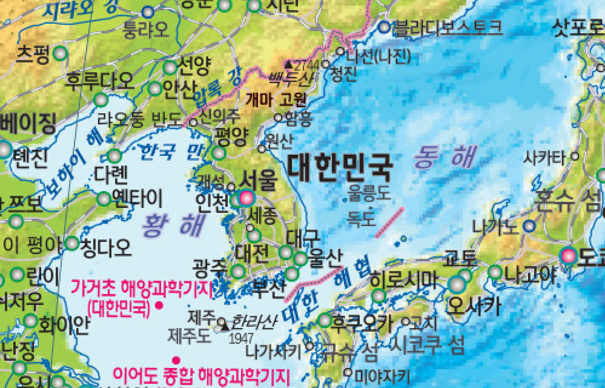 확대를 최대로 하면 이 정도까지 표현이 되네요. 우리나라를 기준으로 보니까 큰 도시 정도까지는 표현이 되네요. 이것보다 더 작은 도시까지 지 표현되면 참 좋을텐데 말이예요. 말하자면 영월, 충주, 문경 정도까지도 표현이 된다면 좋을텐데, 그런 지도는 없을까요?